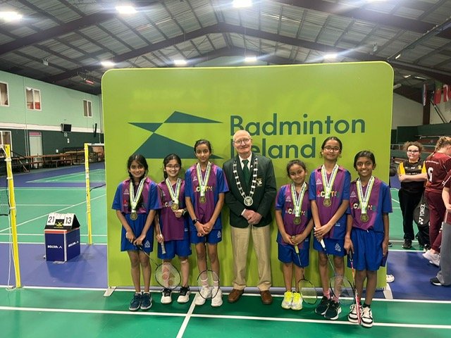 Our boys and girls badminton teams competed in the All Ireland Championships in Balldoyle yesterday. This was following on from the Leinster Championships which our girls team and the boys team got to the semi finals. Both teams have been trainings before school and during lunch breaks for the past few weeks. We had a blue and purple day (our school colours) and a guard of honour to wish them well on Wednesday.